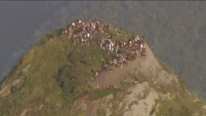 Dezenas de turistas presos no Morro Dois Irmãos durante operação no Vidigal (Imagem: Reprodução/TV Globo)