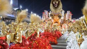 Um lobisomem gigante de 20 metros, inspirado na música “O Vira”, chamou a atenção do público. A comissão de frente usou truques de ilusionismo para representar diferentes fases da carreira do artista.