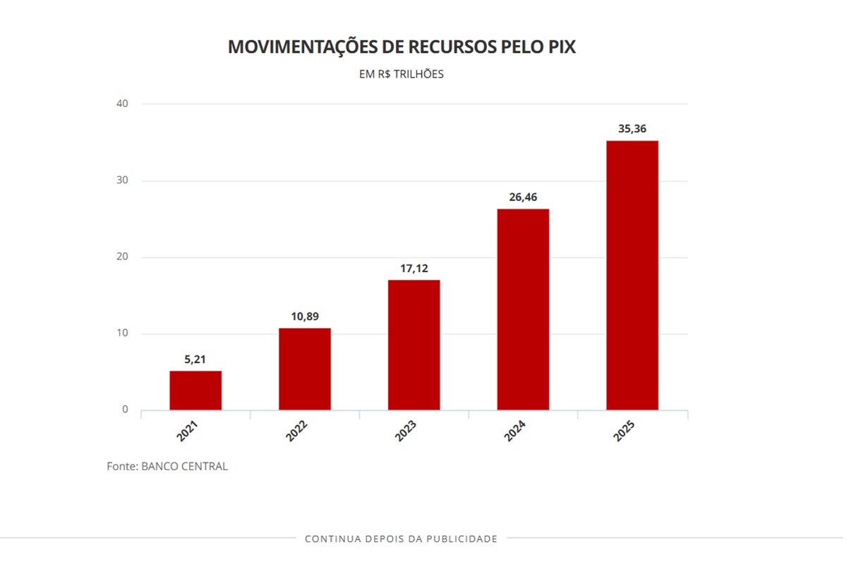 A ferramenta de transferências do Banco Central é um sucesso. No ano passado, o PIX registrou R$ 35,36 trilhões em transferências, um novo recorde.