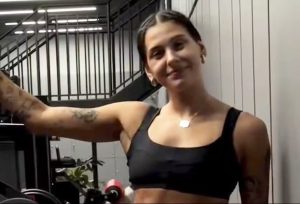 "Eu vi um risco no meu ombro", ainda escreveu ela sobre o corpo torneado. Em outro registro, ela aparece dando muitos socos e chutes durante uma aula de luta, mostrando que, além da musculação, também está empolgada na prática do esporte.