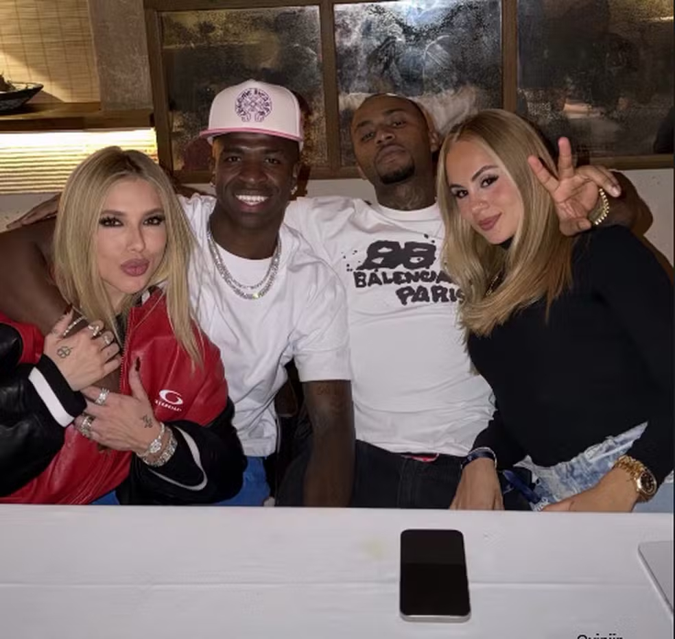 A noite em Madri rendeu encontro entre brasileiros! Virginia Fonseca e Vini Jr. se reuniram para um jantar com o rapper Orochi e a namorada, Lara Jucá. O momento foi compartilhado nas redes sociais.