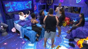 Aline Campos, que também está no quarto, participa da conversa e tenta organizar a divisão de camas. A sister diz que as meninas já têm onde dormir e diz que vai levar os meninos para o Quarto do Líder.