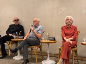 O diretor Claudio Torres e os atores Ary Fontoura e Fernanda Montenegro em coletiva de 'Velhos bandidos' (Imagem: Lucas Salgado)