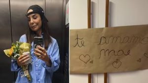 Ela também mostrou a recepção de seus filhos quando voltou para casa com uma faixa feita à mão escrita "te amamos, mãe". "Onde mora todo o meu amor. "Bênção demais!", escreveu na legenda. Ivete tem três filhos: Marcelo, de 16 anos, e as gêmeas Helena e Marina, de oito, que ela teve com o ex-marido, Daniel Cady.