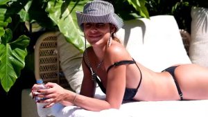 Em uma das imagens, Gonzalez surge com um biquíni preto enquanto toma banho de sol. Já em outro clique, ela toma um drinque. O álbum de fotos contava ainda com registros do companheiro da famosa, o cantor Pipo Marques.