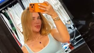 A influenciadora Virginia Fonseca, de 26 anos, compartilhou nos stories do Instagram, nesta sexta-feira (19), uma foto se despedindo dos seguidores, explicando que já havia dado o horário de parar de mexer no celular e ir dormir. Na legenda, a ex-mulher de Zé Felipe escreveu: “Prontinha para ir de berço”, posando de microshort e exibindo a barriga em frente ao espelho no closet de Vini Jr., de 25.