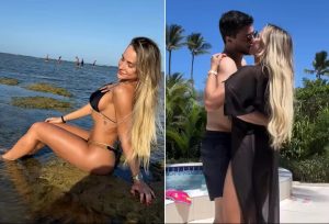 O casal, que está em Trancoso, na Bahia, ainda trocou muitos beijos enquanto dançavam à beira da piscina de onde estão hospedados e ainda curtiram um dia de praia, nesta terça-feira (30), acompanhados dos influenciadores Rafaela Moreira e Hebert Gomes, melhor amigo de Virginia Fonseca.