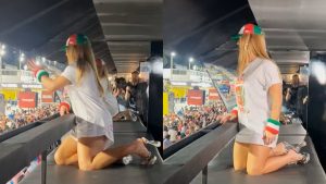 Virgínia Fonseca chegou de surpresa na Marquês de Sapucaí neste sábado (31). A rainha de bateria da Grande Rio, apesar de não ser dia do ensaio técnico de sua escola, marcou presença em um camarote. Assim que apareceu para o público, vestida com a camisa e boné da escola de samba, além de pulseiras nas cores da agremiação, ela causou alvoroço.
