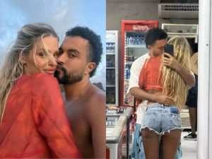Em clima de total intimidade, os dois aparecem trocando carinho em um momento espontâneo e longe de produções elaboradas. No registro feito diante do espelho, eles se abraçam enquanto trocam um beijo discreto, revelando sintonia e cumplicidade. No outro clique, eles olham para a câmera com um sorriso discreto.