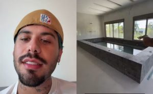 Zé Felipe fez um tour por sua nova mansão, ainda em construção em Goiânia, Goiás, e deu detalhes do lar, ao compartilhar vídeos dos cômodos em seu Instagram nesta segunda-feira (30). O cantor, de 27 anos, que se separou da apresentadora Virginia Fonseca, de 26, em maio do ano passado, mostrou como será o seu novo quarto, que terá piscina e um estúdio acoplado.