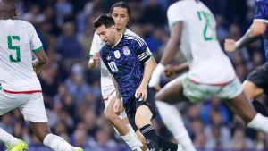 Messi em ação em Argentina x Mauritânia (Foto: Efe)