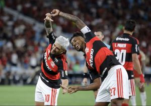 Os rubro-negros mais atentos tiveram um déjà vu na última quinta-feira no Maracanã. Na goleada do Flamengo por 4 a 1 sobre o Independiente Medellín (Colômbia), pela Libertadores, Arrascaeta e Bruno Henrique recriaram uma icônica comemoração que já foi muito usada nas primeiras temporadas de Gabigol no clube: jogadores posicionados lado a lado, com troncos inclinados, braços esticados e os dedos indicadores das quatro mãos tocando uns aos outros.