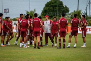 Sábado, o time fez um jogo-treino contra uma seleção amadora de Coruripe, no Gerson Amaral, e venceu por 3 a 0.
