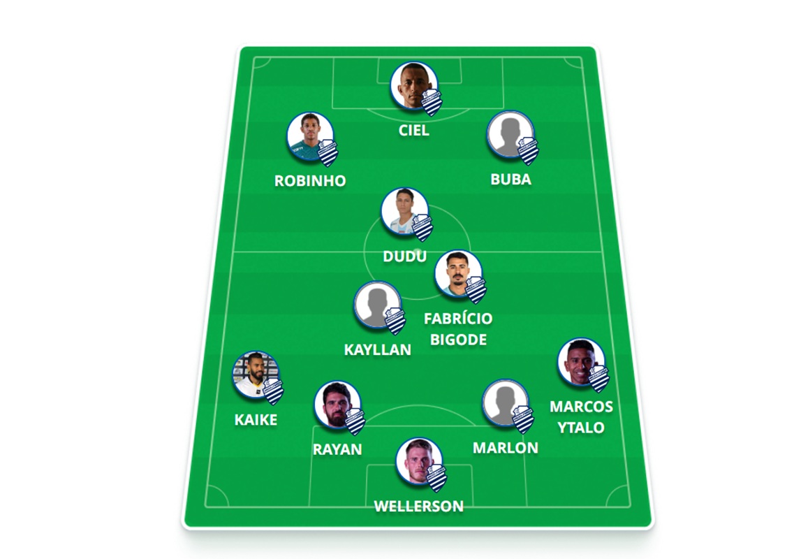 Uma provável formação tem: Wellerson; Marcos Ytalo, Rayan, Marlon e Kaike; Kayllan, Fabrício Bigode e Dudu Figueiredo; Robinho, Buba e Ciel.