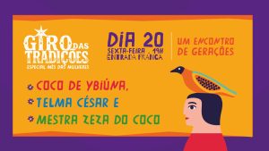 Giro das Tradições – No Movimento da Cultura Viva Coco Ybiúna, Telma César e Zeza do Coco Data: sexta-feira, 20 de março de 2026 Horário: 19h Local: Theatro Homerinho – Rua Sá e Albuquerque, nº 450, Jaraguá, Maceió Entrada: Gratuita Classificação: Livre