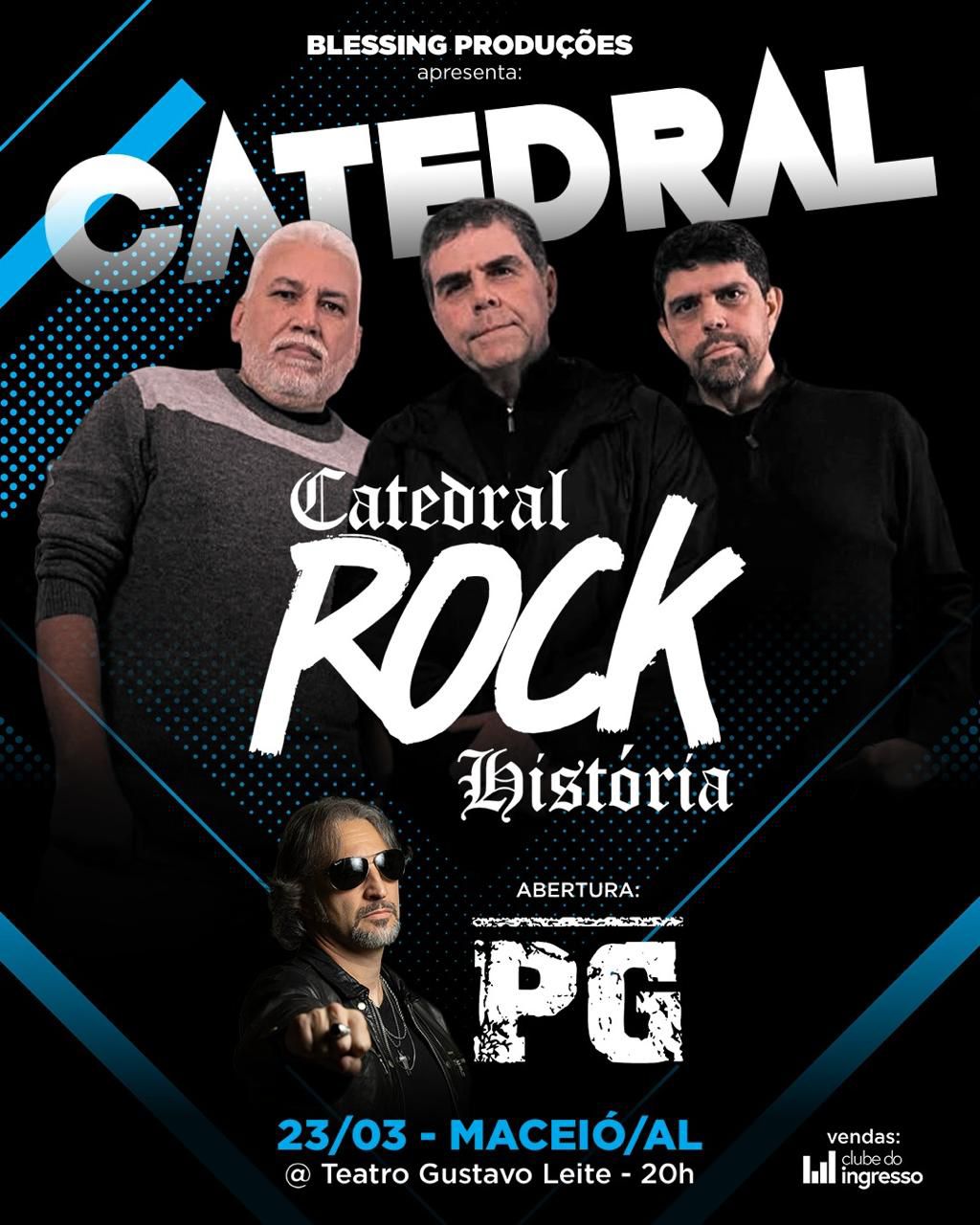 Show Catedral Rock História Quando: 23 de março de 2026 Onde: Teatro Gustavo Leite - Centro de Convenções, Jaraguá Ingressos: https://www.clubedoingresso.com/evento/catedralrockhostoria-maceio