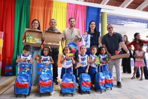 A entrega foi marcada pela alegria das crianças e adolescentes, que receberam os novos kits escolares e fardamento com muito entusiasmo.