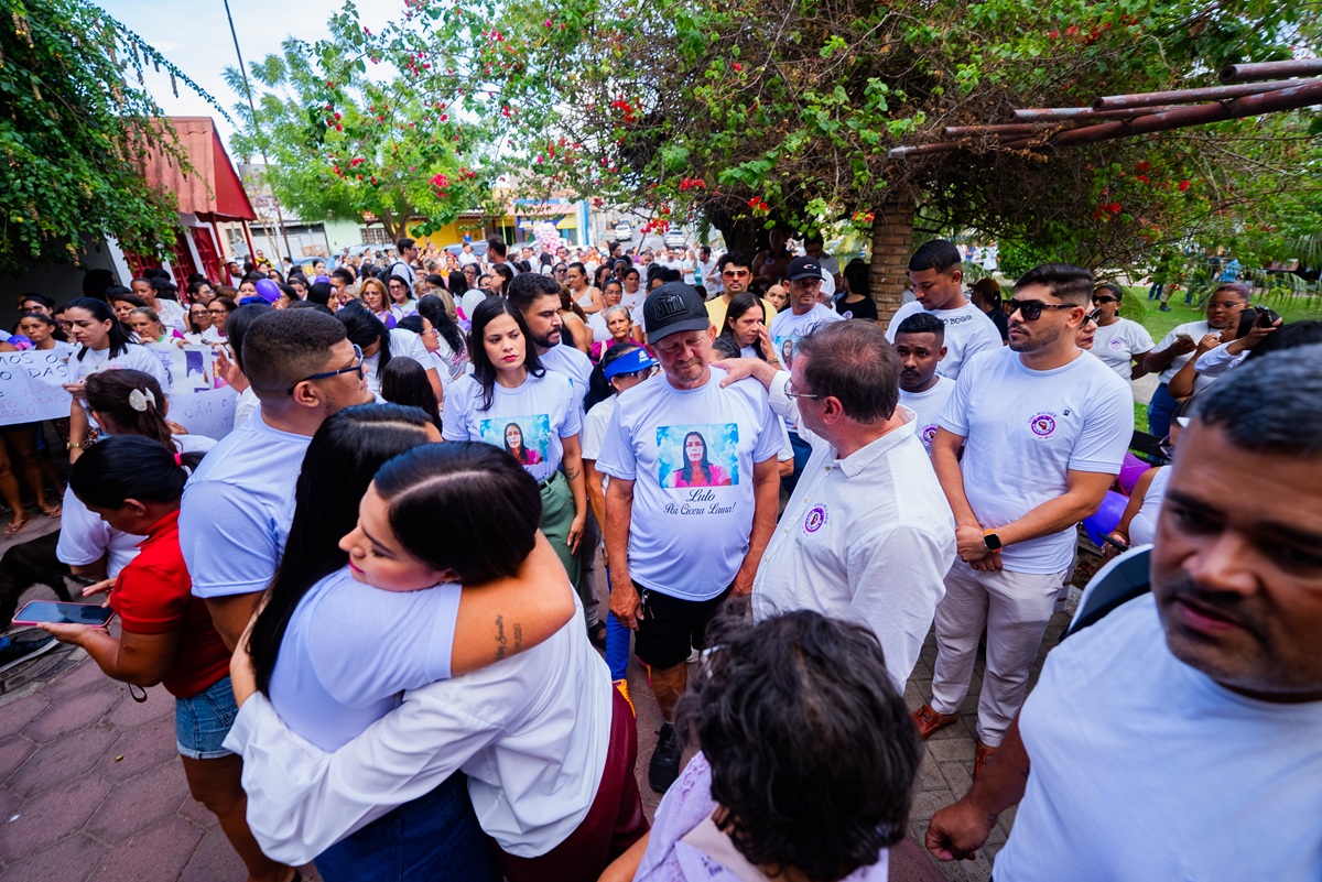 Com concentração no Bosque das Arapiracas, o evento reuniu milhares de pessoas vestidas de branco, em um gesto coletivo de solidariedade, união e resistência. O prefeito Luciano Barbosa esteve presente na ação, ao lado de familiares de Cícera, secretários, vereadores, representantes de movimentos sociais, estudantes, servidores públicos e população em geral.