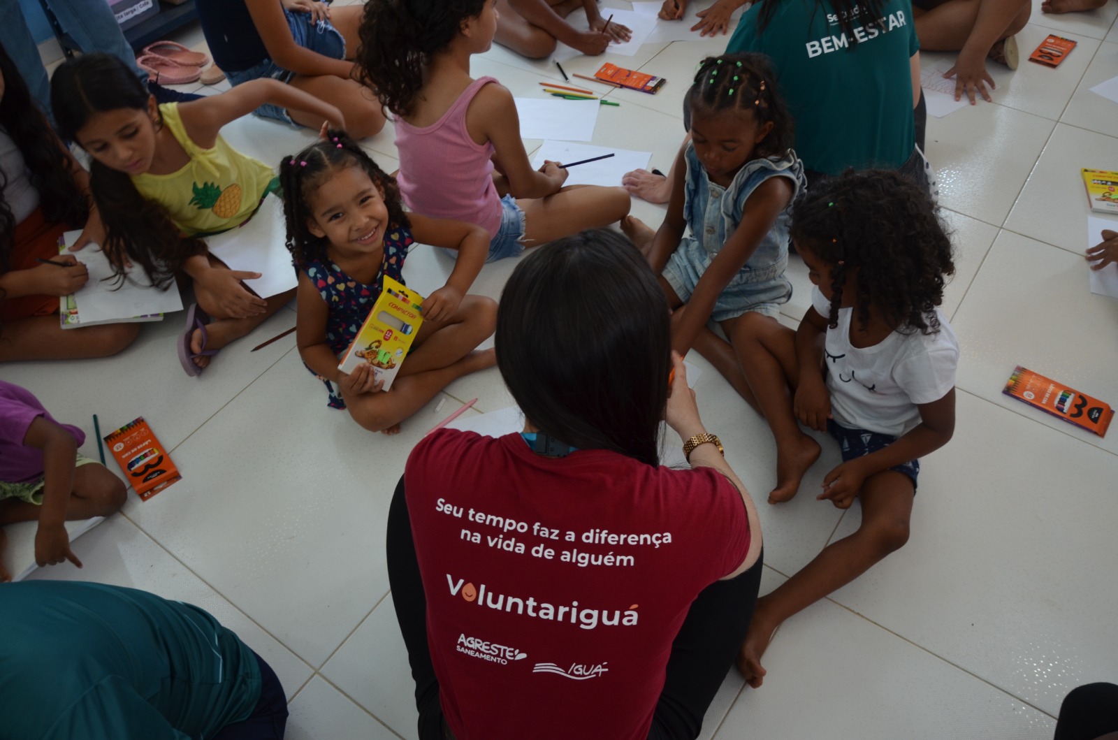 Já no dia 24 de dezembro, a programação seguiu no Centro de Guadalupe, com a entrega de materiais escolares para as crianças atendidas. Além das doações, o momento contou com atividades educativas e recreativas, como jogo da memória, dinâmicas sobre o descarte correto de resíduos e desenhos criativos com o tema “água”, promovendo aprendizado, consciência ambiental e diversão.