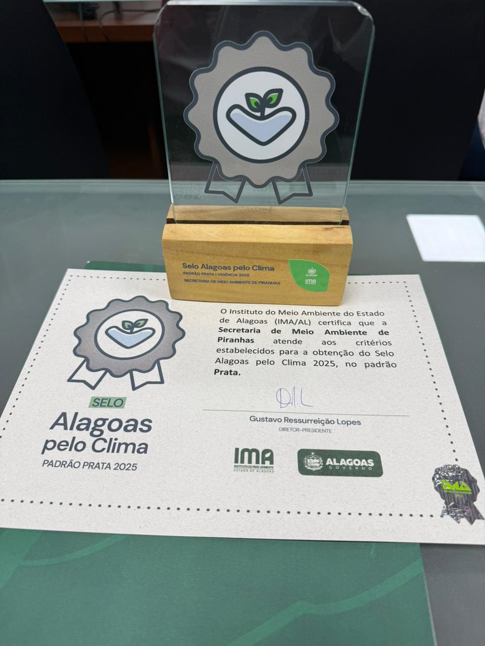 A Prefeitura de Piranhas foi reconhecida com o Padrão Prata no Selo Alagoas pelo Clima 2025, iniciativa do IMA/AL em parceria com a FIEA, que certifica empresas e órgãos públicos comprometidos com boas práticas de descarbonização e sustentabilidade. A cerimônia de entrega da premiação aconteceu nesta terça-feira (20), na Casa da Indústria, em Maceió.