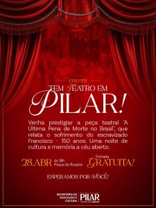 * Evento: Última Pena de Morte – “Francisco, o Escravizado” * Data: terça-feira, 28 de abril * Horário: 18h * Local: Praça do Rosário – Pilar/AL