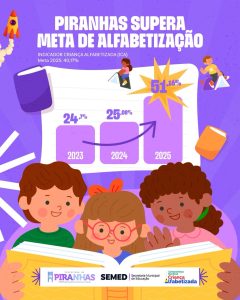 De acordo com os dados oficiais, Piranhas alcançou 51,16% no índice de crianças alfabetizadas, superando não apenas a meta prevista para 2025, de 40,17%, mas também antecipando o cumprimento da meta projetada para 2026, estipulada em 48,96%.