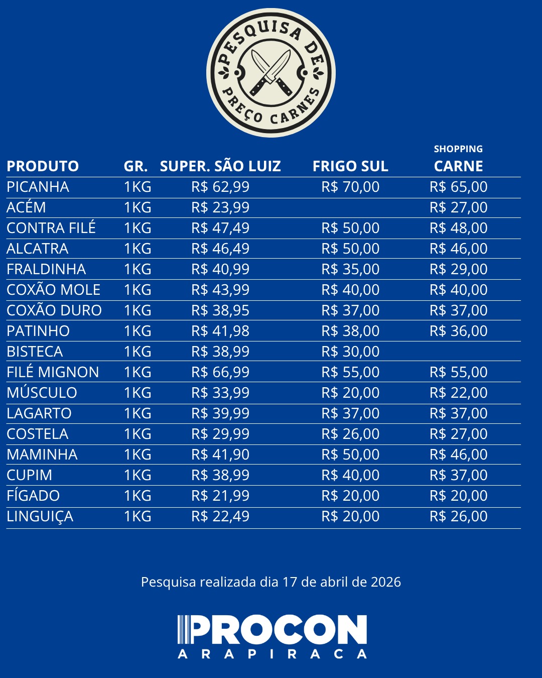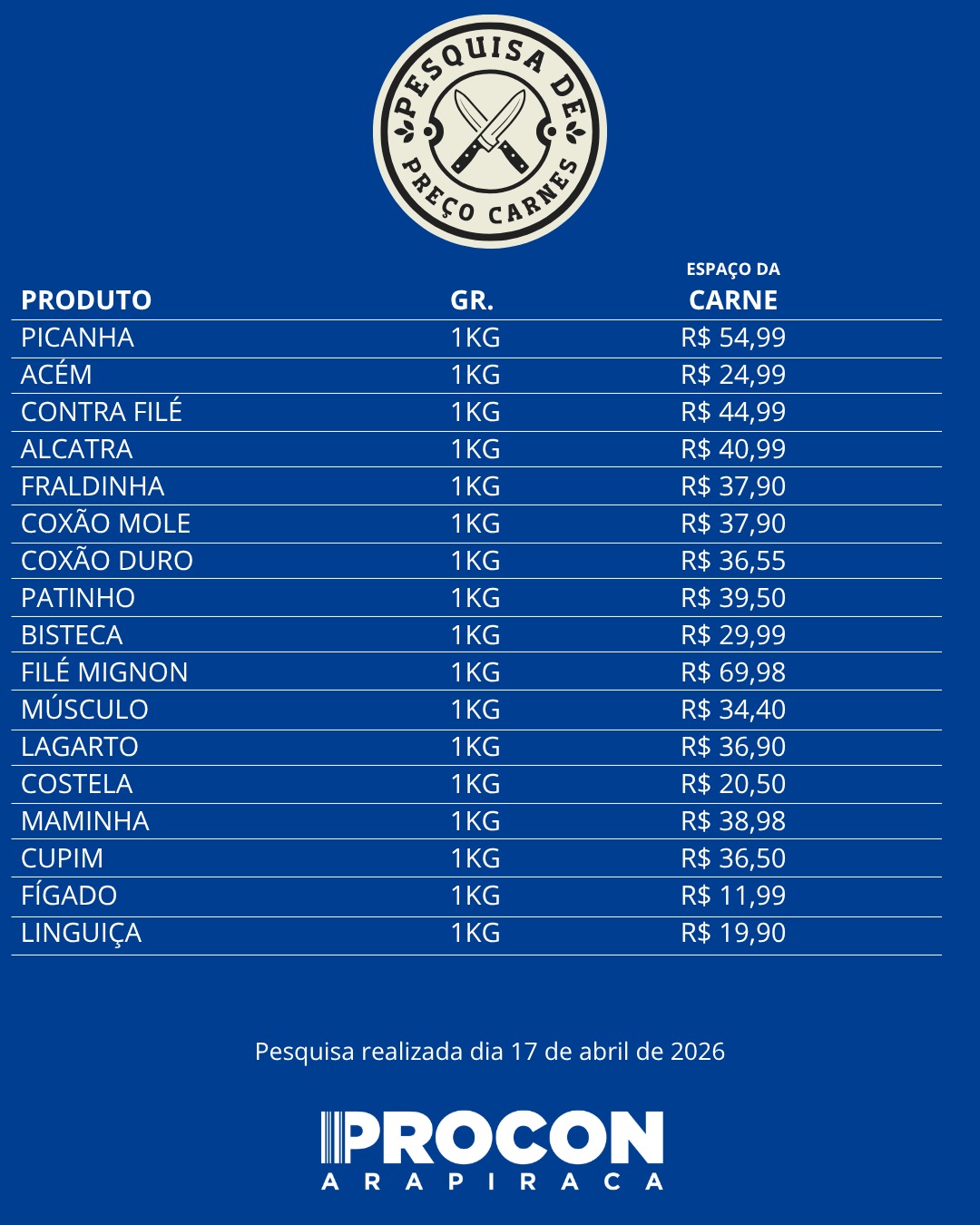 A pesquisa conta com outros 15 cortes bastante procurados pelos consumidores.