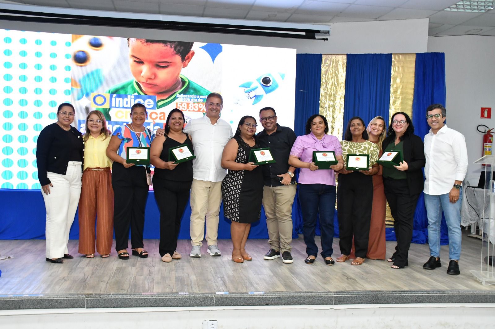 É tempo de celebrar! A Secretaria de Educação de São Miguel dos Campos realizou na tarde da última sexta-feira (16), a cerimônia de premiação aos profissionais referente à conquista do Selo Ouro Nacional Compromisso com a Alfabetização do MEC e também em comemoração ao Índice Criança Alfabetizada (ICA) 2025.