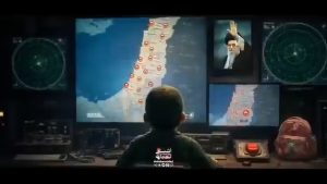Irã escolhendo alvos de ataque com foto de Ali Khamenei, líder supremo do país morto no primeiro dia de guerra, em vídeo divulgado pela mídia estatal (Imagem: Revayat-e Fath / Divulgação)