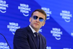 Presidente francês discursou no Fórum Econômico Mundial, em Davos, e disse que 'não faz sentido ameaçar aliados da Otan'. Macron fez discurso de óculos por conta de uma 'condição ocular'.