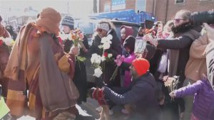Apoiadores enfrentaram neve e chuva para encontrar os monges e oferecer flores a eles enquanto passavam por suas cidades.