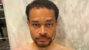 Foto obtida pela CNN mostra Cole Tomas Allen com cobertor térmico após ser detido no sábado, 25 de abril de 2026, no Washington Hilton, após ataque no jantar de correspondentes da Casa Branca (Imagem: Obtida pela CNN)