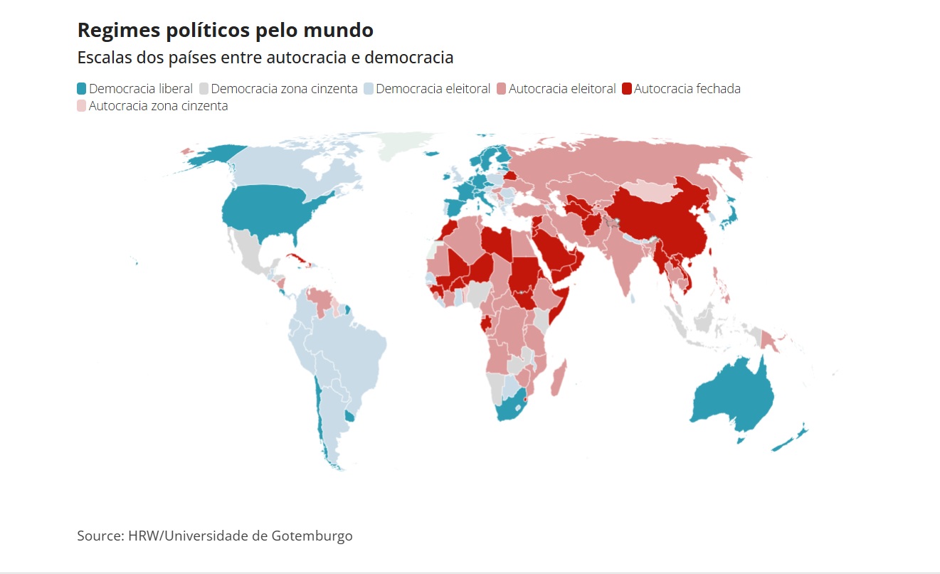 ONG considera que EUA lideram um avanço autoritário de impacto mundial, junto de Rússia e China. Documento aponta que 72% da população mundial vive sob regimes autoritários.