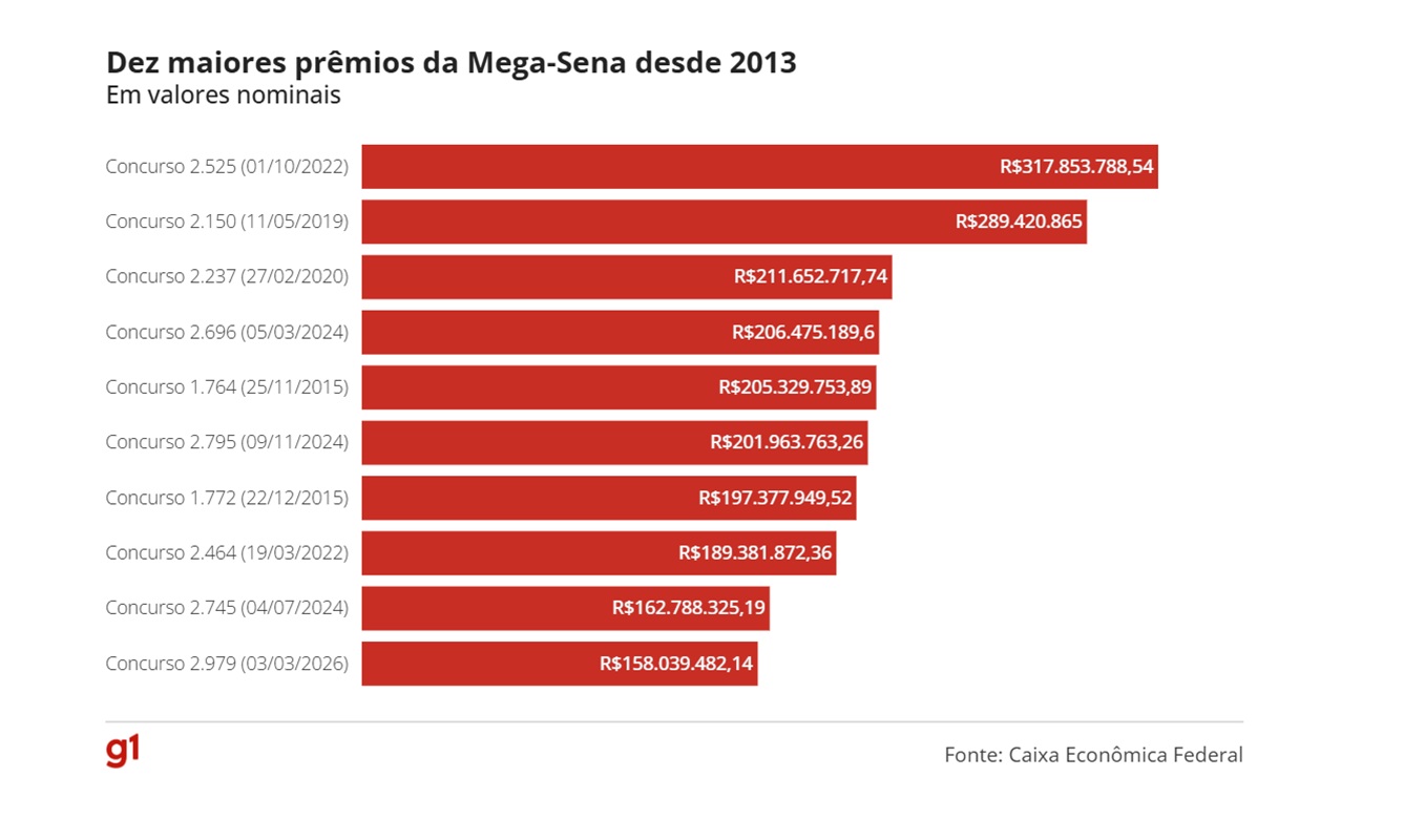 A Mega tem três sorteios semanais: às terças, quintas e sábados.