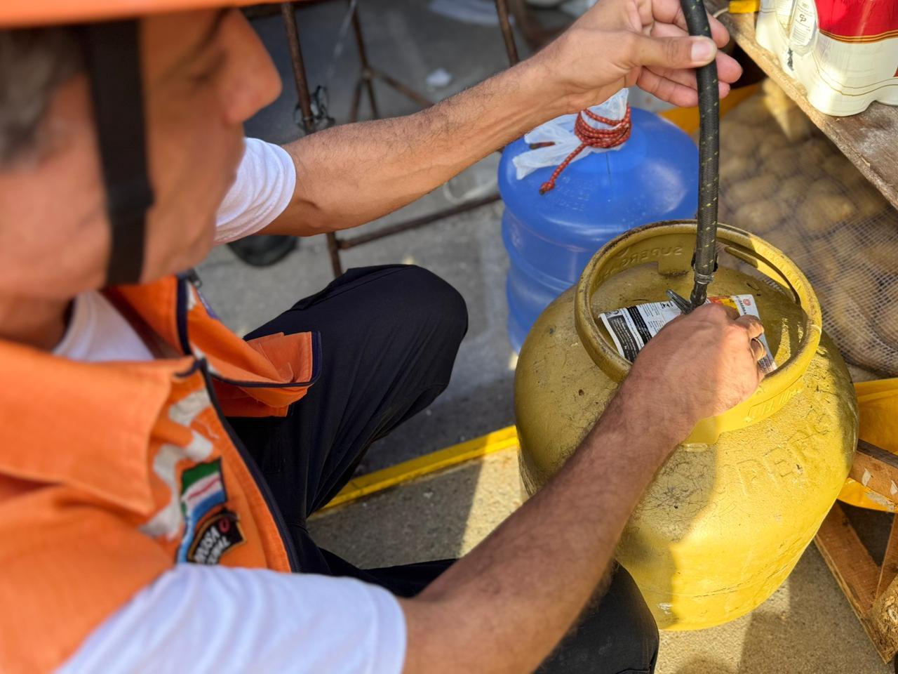 No evento, são comercializados alimentos e para isso, os comerciantes utilizam gás GLP (botijão). Nas vistorias, os agentes verificam se as mangueiras e válvulas estão ajustadas corretamente para que não haja vazamento de gás, bem como se estão dentro da validade, o que pode interferir na segurança durante a utilização.
