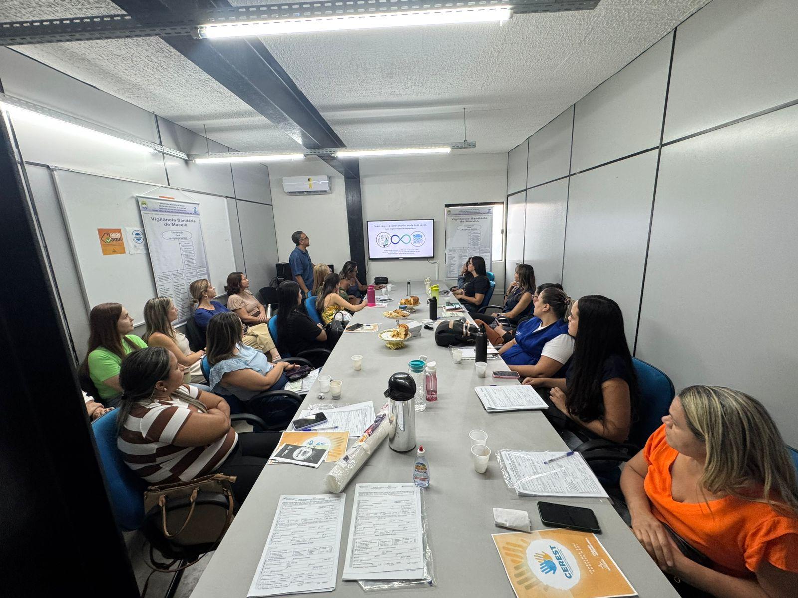 Cerest Maceió promove capacitação sobre o correto preenchimento das fichas do SINAN para técnicos das UPAs. (Imagem: Wilson Smith / Ascom SMS)