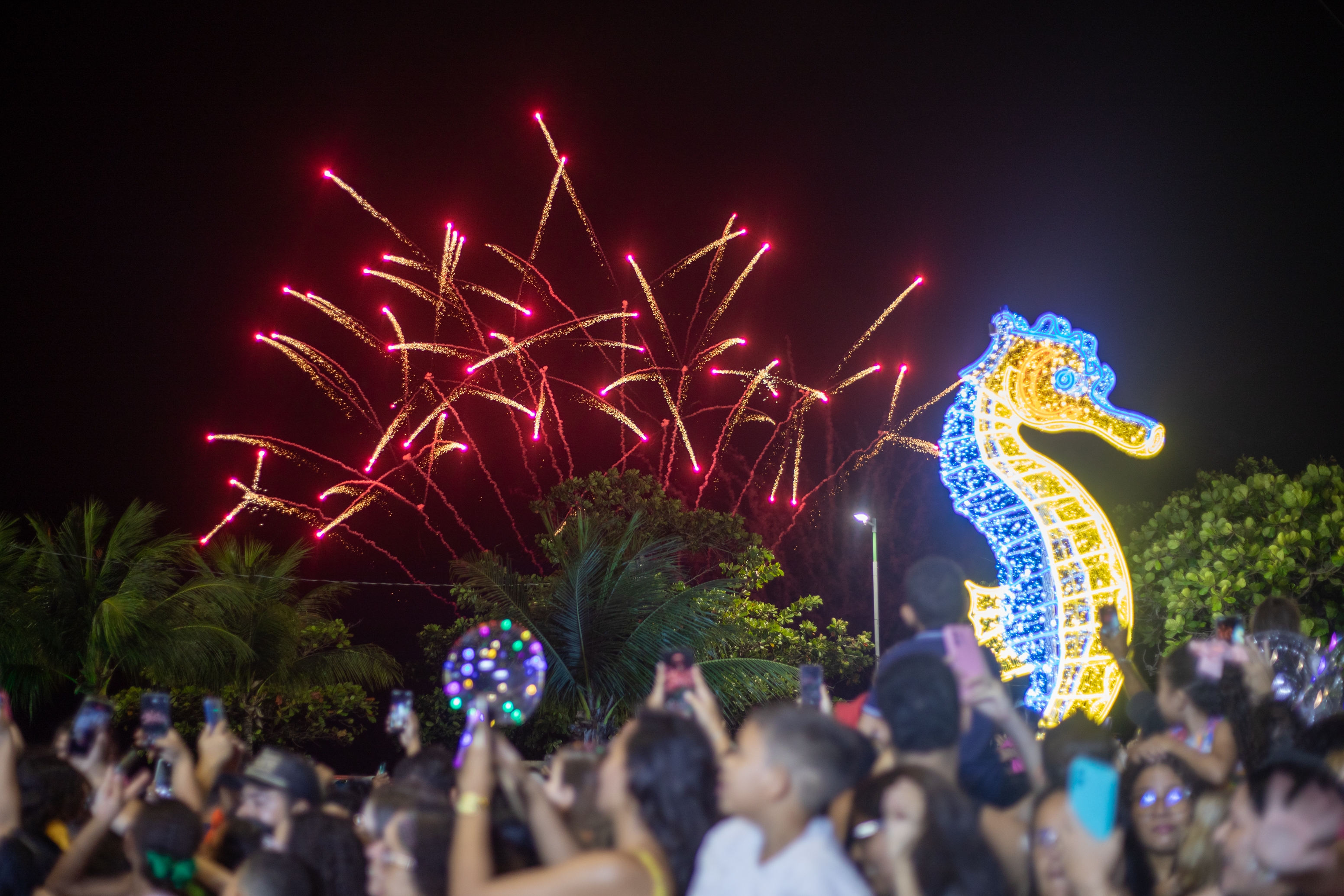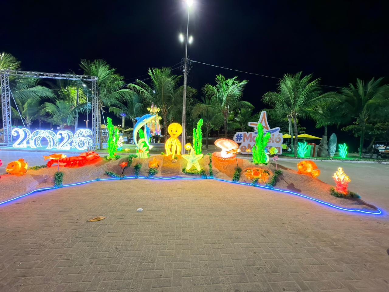 Bonecos de neve e guardas natalinos em tamanho real também ganharam sua versão de areia. A decoração natalina na capital das águas reúne corais iluminados, peixes translúcidos, polvos, conchas, algas e estrelas-do-mar, além de um cavalo-marinho de oito metros de altura, ornamentado com luzes e pisca-pisca em LED. Estes equipamentos foram instalados no Marco dos Corais.