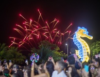 Com a proposta de ser um Natal Tropical, local escolhido pelo Papai Noel para passar suas férias, Maceió recebeu ornamentações que une a magia de Natal à merecida alcunha de Paraíso das Águas. (Imagem: Saulo Cassimiro/Secom Maceió)
