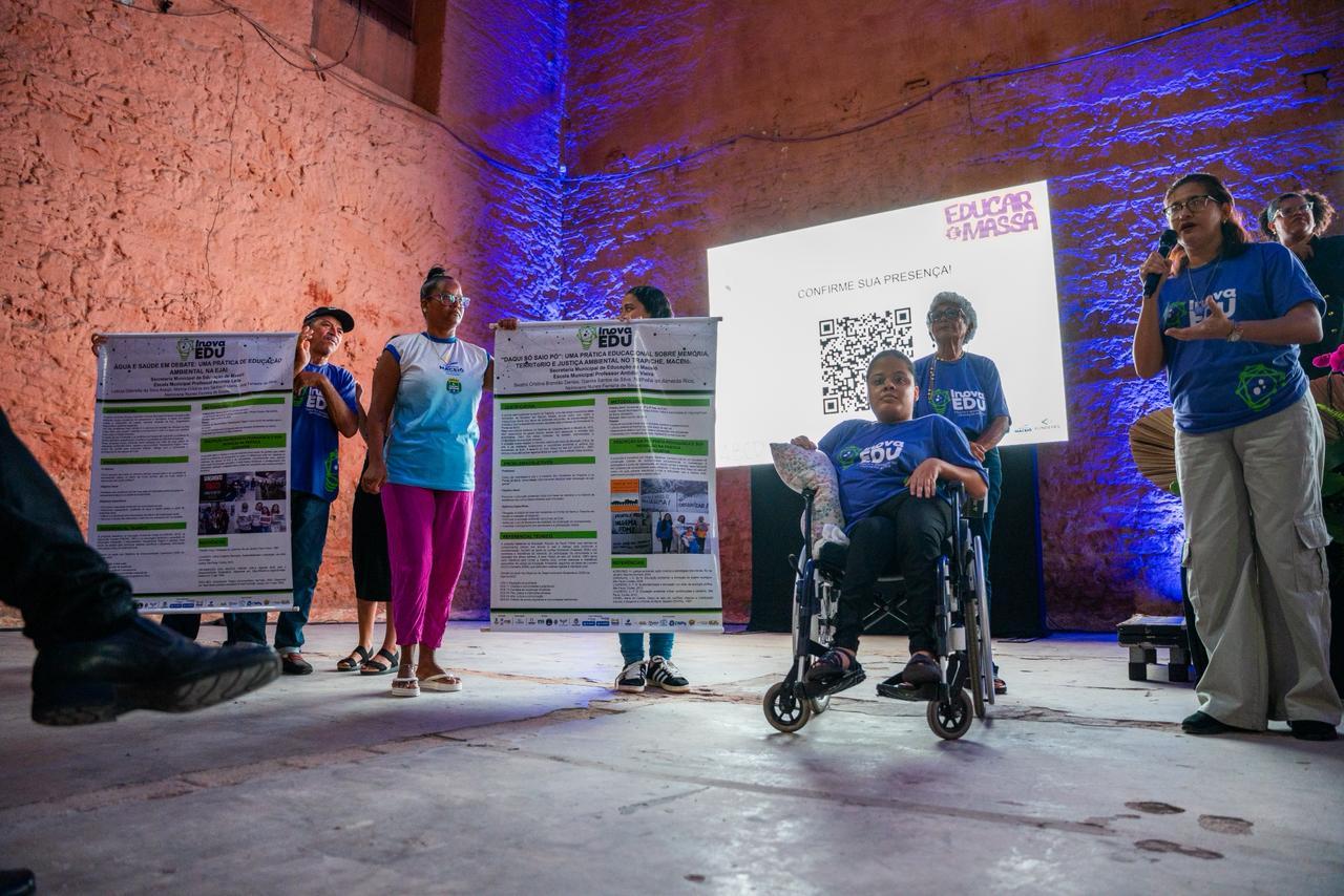 Na ocasião, também foram apresentadas experiências e projetos pedagógicos que marcaram a trajetória do Educar é Massa. Entre os destaques, esteve a apresentação da proposta educacional desenvolvida por “Daqui Só Saio Pó”, voltada à memória, território e justiça ambiental. O projeto foi desenvolvido pela turma da EJAI da escola Antídio Vieira e conquistou o Prêmio InovaEdu, na Semana de Pesquisa, Tecnologia e Inovação na Educação Básica (Sinpete).