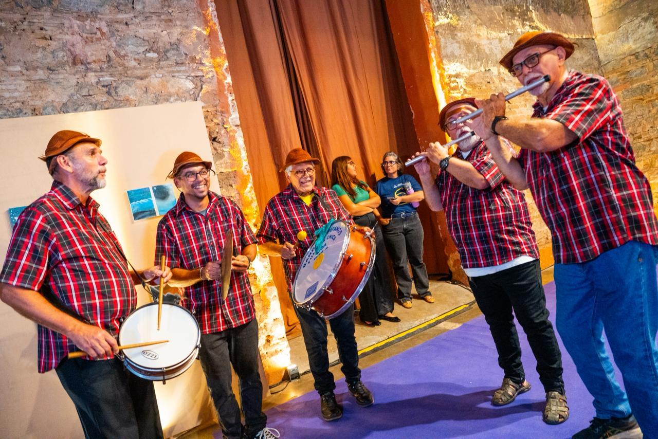 Durante a noite, a programação teve início no Espaço Armazém, onde o público foi recebido com a apresentação da Banda de Pífano e a exposição de publicações da Semed, reunindo materiais produzidos pela rede municipal de ensino.