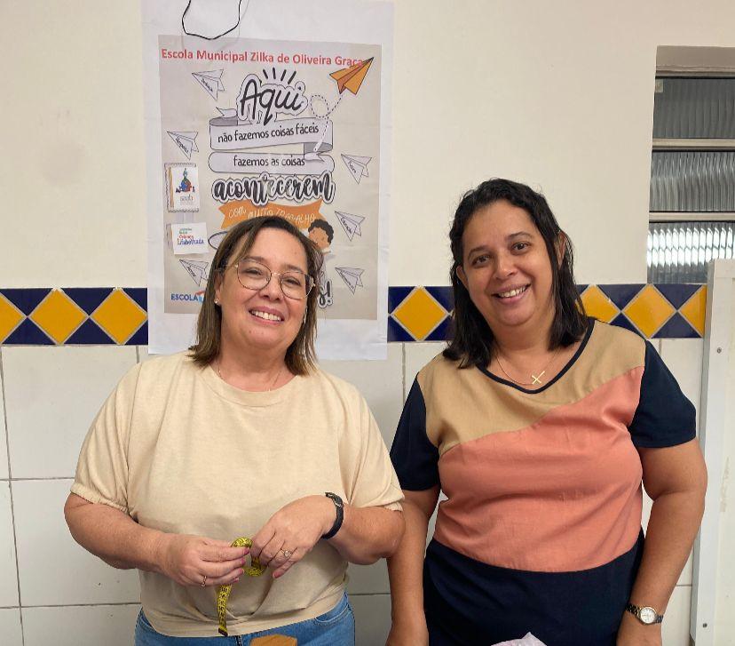A diretora da escola Zilka de Oliveira, Sandra Mônica Paes Guimarães, e a vice-diretora Maria Cláudia Cardozo dos Santos iniciaram a campanha na unidade de ensino.