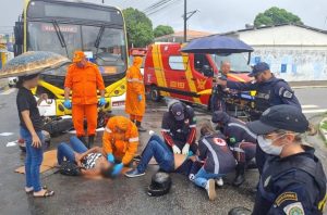 A equipe de Ronda Ostensiva Municipal (ROMU) Bravo estava cumprindo diligências próximo ao local do acidente e foi a primeira a atender à ocorrência. A guarnição acionou o Corpo de Bombeiros e o Departamento Municipal de Transporte e Trânsito (DMTT), além de prestar apoio aos dois feridos até a chegada do socorro.