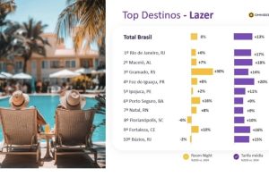 O estudo aponta, ainda, um movimento consistente no turismo de lazer, com crescimento em volume nas principais regiões e evolução positiva na tarifa média, além da manutenção do protagonismo do Nordeste, evidenciando a força regional e a competitividade dos destinos nordestinos no mercado brasileiro.