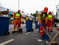 A Autarquia Municipal de Desenvolvimento Sustentável e Limpeza Urbana (Alurb) conta com mais de 100 trabalhadores atuando das 8h até às 6h do dia seguinte, realizando a limpeza prévia, o recolhimento dos resíduos descartados irregularmente e a higienização das vias após a passagem dos foliões.