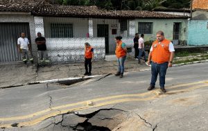 Diversas frentes de atuação da Prefeitura de Maceió foram até o bairro Chã da Jaqueira, na parte alta, apurar as causas de um rebaixamento de solo na Rua Prefeito Joatas Malta de Alencar. As equipes foram acionadas no início da tarde dessa terça-feira (20) e constataram a obstrução de uma galeria de águas pluviais por descarte irregular de lixo, o que provocou as movimentações do solo na região.