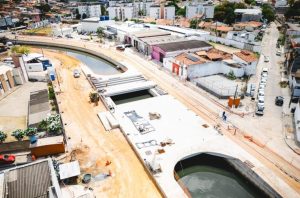 Os trabalhos de fundação de obra dos mirantes já foram concluídos, bem como a execução do novo coletor-tronco de drenagem, com capacidade para transportar grandes volumes de água da chuva.
