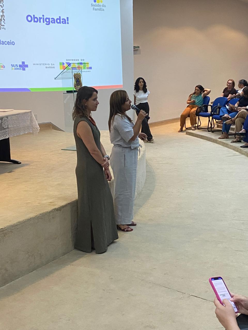 Técnicas do Ministério da Saúde, Bárbara Menezes e Júlia Santos ministraram a oficina. Fotos: Cortesia