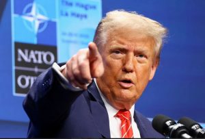O presidente dos Estados Unidos, Donald Trump, é fotografado durante uma coletiva de imprensa na cúpula da Otan em Haia, Holanda, em 25 de junho. Dos 32 membros da Otan, 31 devem atingir a meta de gastar 2% do PIB em defesa este ano (Imagem: Piroschka Van De Wouw/Reuters via CNN)
