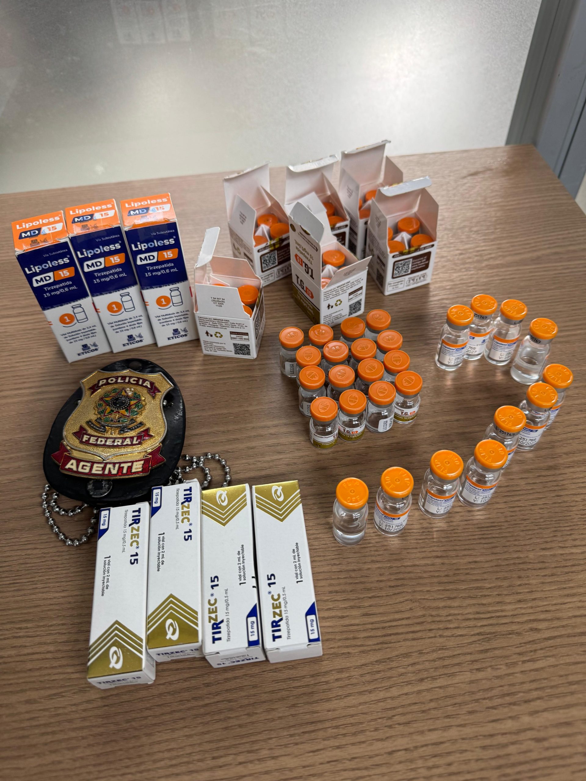Dentre as ocorrências, destaca-se o crescimento expressivo de tentativas de ingresso irregular no território nacional de medicamentos emagrecedores, desprovidos de registro ou autorização da Agência Nacional de Vigilância Sanitária (ANVISA). No contexto dessas ações, foram apreendidas diversas unidades de fármacos de procedência estrangeira, introduzidos de forma clandestina, em desacordo com a legislação sanitária e aduaneira vigente.