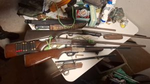 Ainda com a colaboração da população, os policiais chegaram até um indivíduo que mantinha uma espingarda e um revólver calibre 38 em sua residência. Após vistoria no local, com autorização do proprietário, foram encontrados, além das armas, dois recipientes de pólvora e quantidades de chumbo.